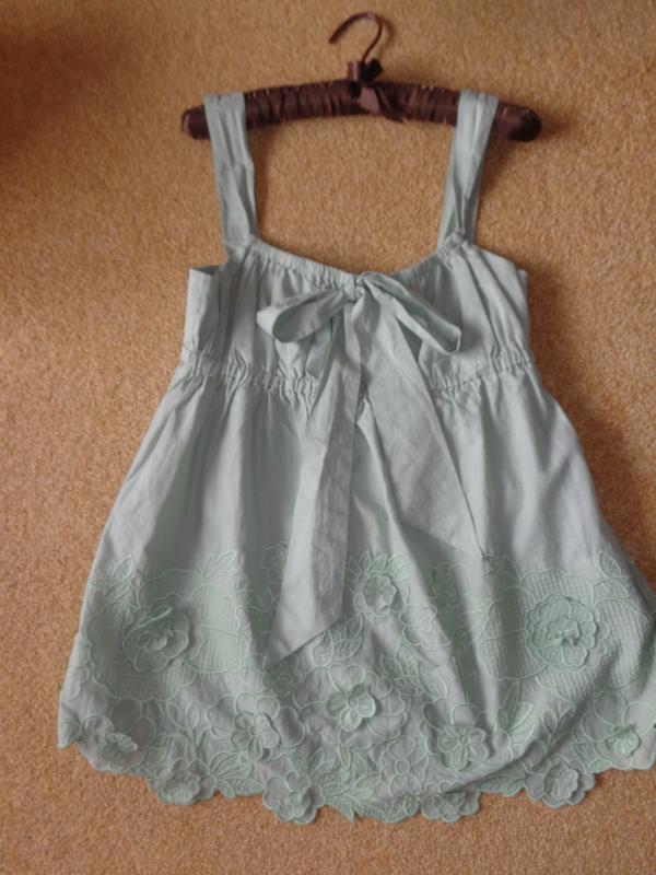 топ JAUNE ROUGE ,100% cotton , блідо-зелений колір ,внизу - красива вишивка з троянд, які прикрашені опуклими серединками ,розмір "M" !