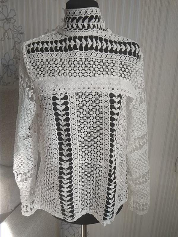 гіпюрова блузка на стійку яка має ззаду замочок. Дуже стильно!