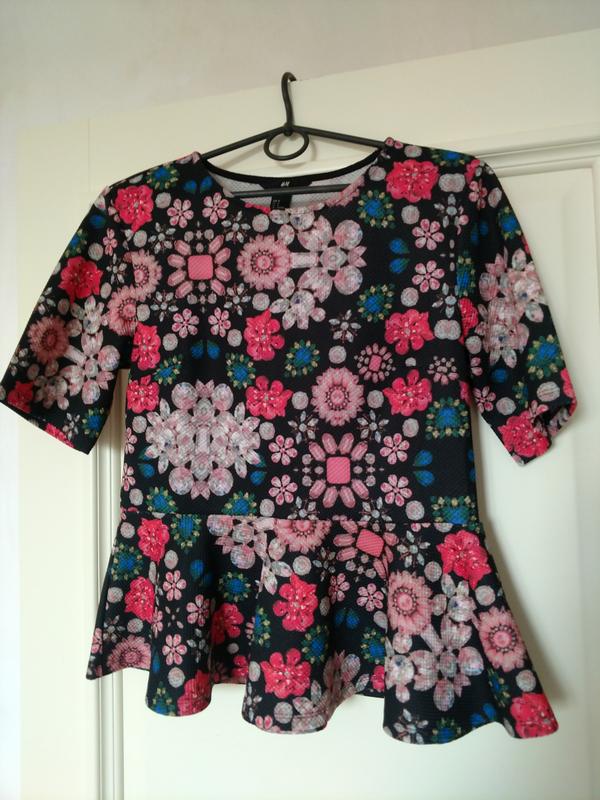 Яскрава блузка , прикрасить будь-який образ. Красивий принт, квіти з алмазів))) Груди 43 Довжина 58