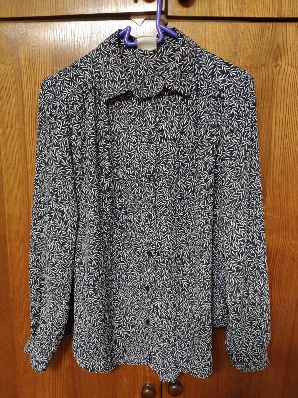 Блуза , стан нової речі, темно-синя з білим візерунком листочки