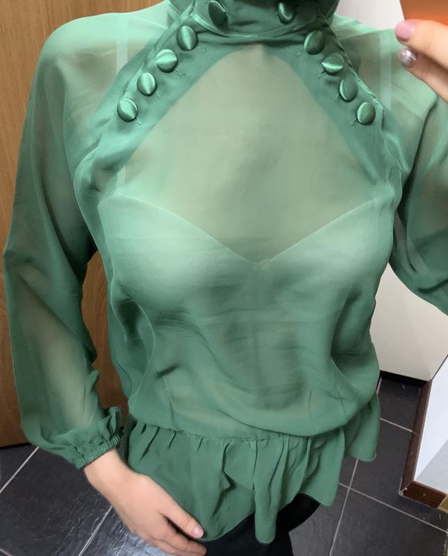 Зелёная блуза Bodyright, Ни разу не надевала,состояние отличное.Дефектов нет. Длинна 60см. Талия 50см. Грудь 48см.
