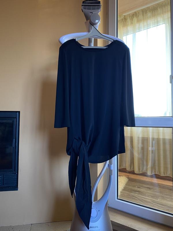 Оригінал. Стан ідеал. Дуже гарний фасон. Можна носити як туніку, а можна зав'язувати і вже елегантна блуза. Спереду темно сіра, а ззаду та комірець - чорна. Розмір на бірці Л, та підійде і на М