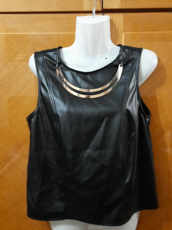 Atmosphere р. 10 еротична нова блуза еко-шкіра із золотистим прикрасою