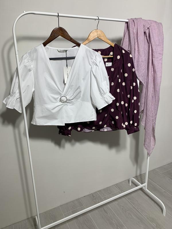 Легка та романтична блуза від Страдивариус. Рукав частково на резинці, красиво збирає рука в об'ємний ліхтарик)