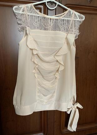 Красива блузка персикового кольору.Розмір М можна і на S ПОГ: 43 див. Плечі без воланів:30 см Довжина:60 см Низ на виході:48 див. Доставка: нп