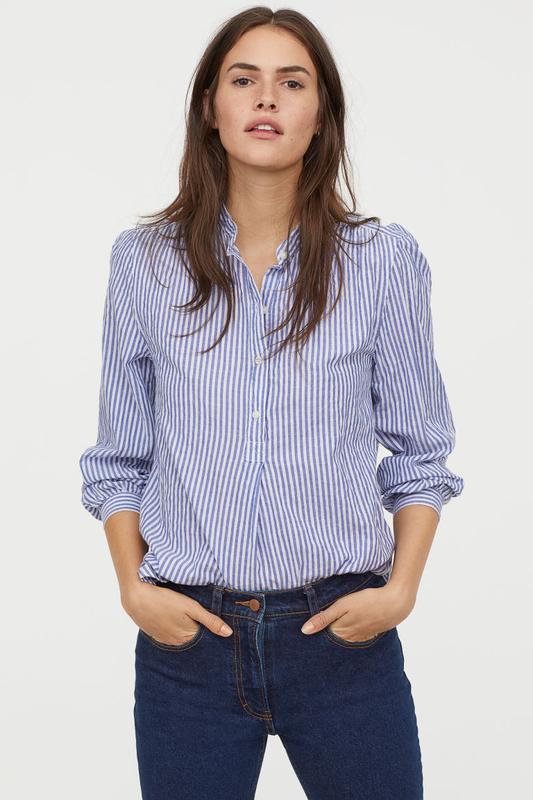 Блузка-сорочка з довгими рукавами в смужку з бавовни від h&m під джинси