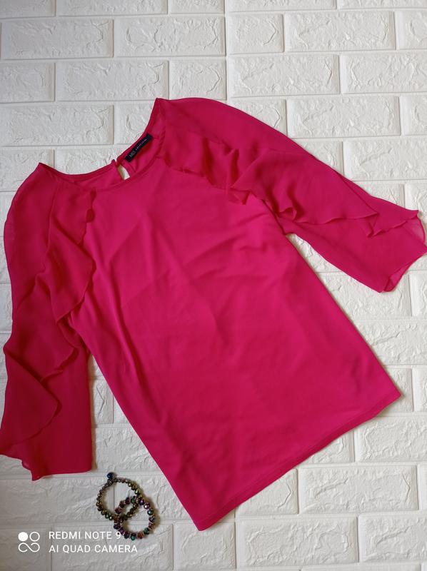 Вискозная блузка рукава шифоновые с воланами Размер указан 16 ДИ-64 ПОГ-53 ПОТ-51 ПОБ-57 Состав:вискоза, полиэстер Новое без бирки
