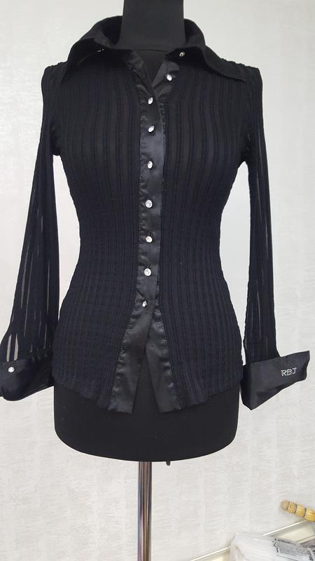 Ефектна та ошатна дизайнерська блуза від легендарного італійського бренду модного одягу класу люкс RoccoBarocco, який уже багато років створює модний одяг для найвпливовіших людей світу. Відмінною рисою всього одягу від RoccoBarocco є яскраві колірні рішення та використання оптичних ілюзій. RoccoBarocco приділяє велику увагу кожній деталі, не залишаючи поза увагою дрібниць; цей хід вже кілька десятиліть дозволяє бренду бути одним із небагатьох, хто задає тон і створює моду. Одяг від RoccoBarocco носять Клаудіа Кардинале, Лаура Антонеллі та Лайза Мінеллі. Стиль Рокко Барокко - це новизна, гламур, шик і авангардні ідеї в одному флаконі, він завжди кидає виклик моді, виходить за рамки повсякденності і створює щось неймовірне. Дуже цікава еластична тканина на блузці. На чорній напівпрозорій сітці наче заткані смужки трикотажу. Застібка-планка на гудзики із кристалами Сваровські розташована спереду по центру. Комір, планка та манжети виконані з шовкової або атласної тканини, вигідно підкреслюючи фактуру основної тканини. На лівому манжеті рукава кристалами Сваровскі викладено логотип бренду. Бірка з розміром та складом матеріалу зрізана. Орієнтуйтеся за вимірами. Підійде на розмір S, XS груди 35-48 см талія 29-44 см стегна 35-47 см рукав 61(53)см довжина виробу 57см Буде ще багато фірмових речей. Підписуйтесь! Майте на увазі, що поки ви додаєте товар в ''обране'', хтось його вже купує. І ви можете втратити свій шанс придбати річ, що сподобалася. Дешевше купувати відразу кілька речей-таким чином, ви заощаджуєте на доставці. При покупці п'яти і більше речей та оплаті на карту продавцю відразу - доставка безкоштовна. Вдалих і приємних покупок! 3.04.21