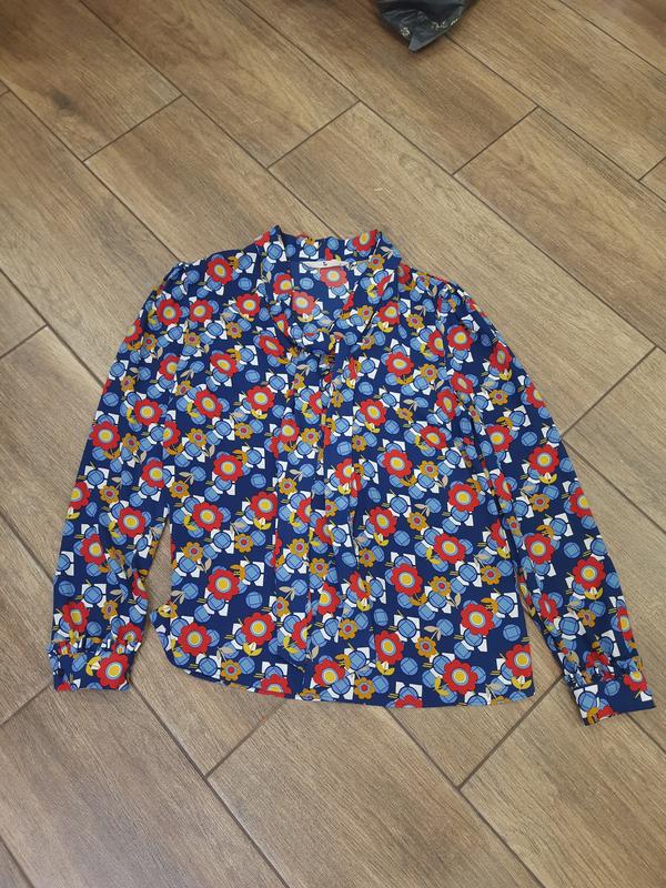 Новенька стоковий блузка з довгим рукавом на дівчину 46-48р. Довжина по спинці 60см, довжина рукава від плеча 61см,ширина під пахвами 47см.Дуже красиво зроблено манжети на рукавах, рукав-ліхтарик. Спереду на грудях завязыватся бант або краватку.