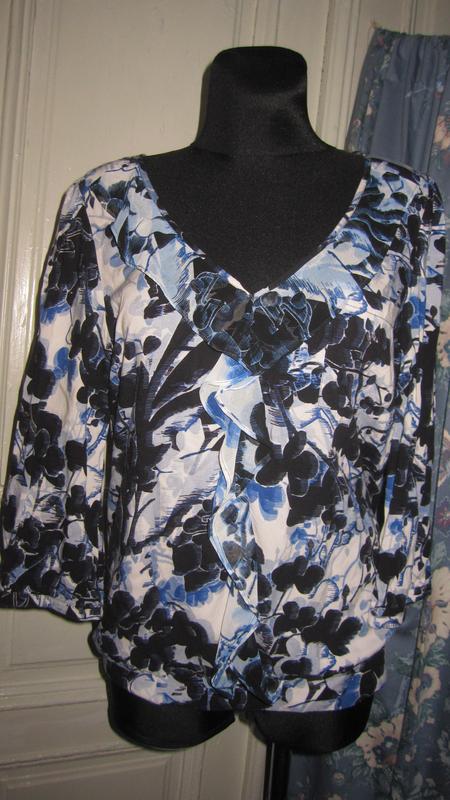 Блузка синього кольору,віскоза,ПОГ 51,довжина 70,довжина рукава 49.знизу патент.ззаду гумки