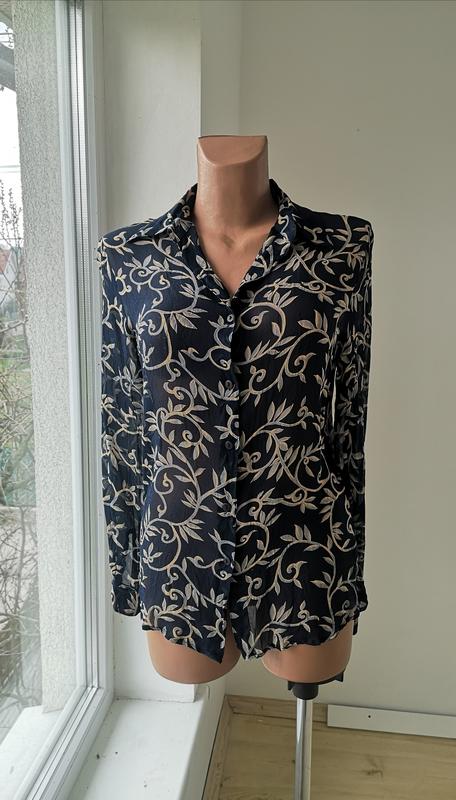 Блузка з напівпрозорого шифону, натуральний шовк. Темно-синій колір, камера не передає. Ніжна, мягусенькая, легкий як пушинка. Стан добрий. Річ з особистого гардеробу. Розвантажують свої шафи, будь ласка дивіться мої інші оголошення. Питання вітаю. ПОГ 40-47 Плечі 40 Рукав 55 Довжина 64