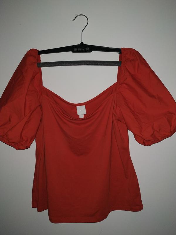 Трендова кофтинка яскравого червоного кольору з рукавами - фонаріками. Параметри ПОГ - 47 см Довжина - 41 см Довжина рукава - 27 см