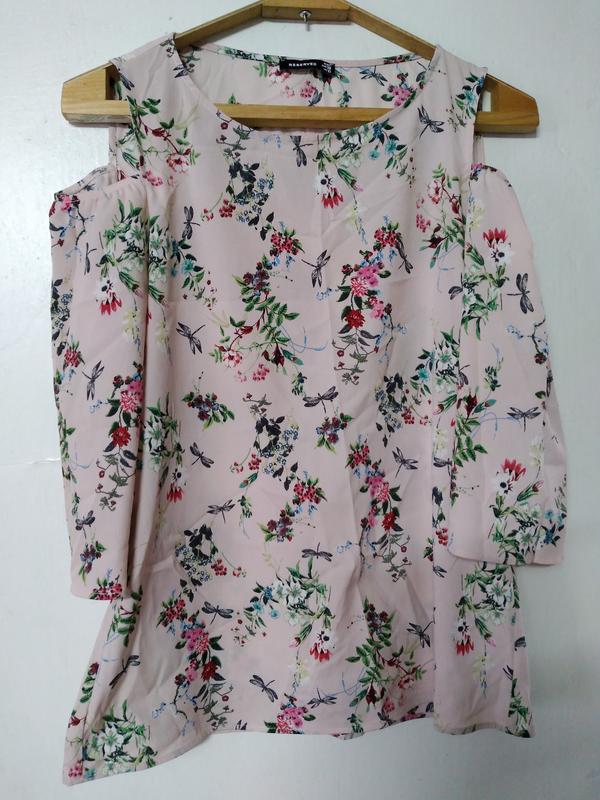 Блуза в квітковий принт і з вирізами на плечах