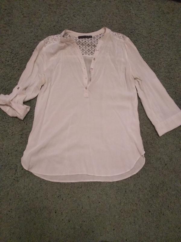 біла, прозора ,на спині мереживо, рукава можна підкотити
