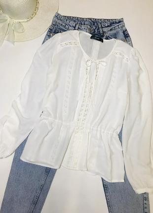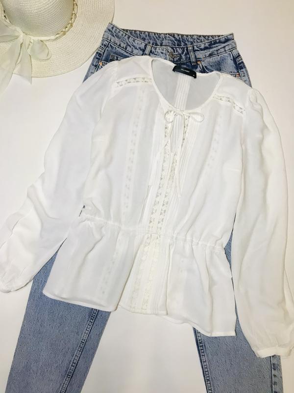Очень красивая блузка со вставками из кружева. Состояние идеальное без дефектов. Длина 62 см, плечи 37 см, длина рукава 64 см, пог 52 см, ПОТ 40 см, резиночка тянется до 55 см,