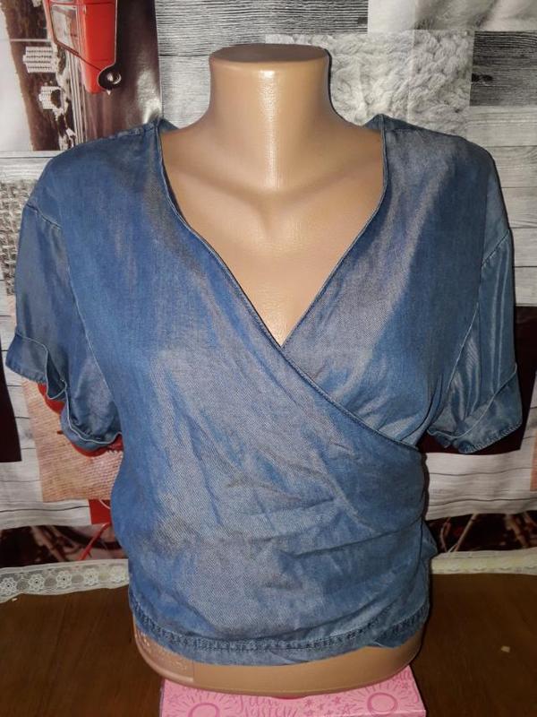 Джинсова літня блузка на запах, зав"язується ззаді 46 розмір