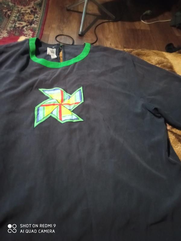 Плечі 48см,довжина 77см.Тканина шовк з переливом,з боків розрізи.Темно синя
