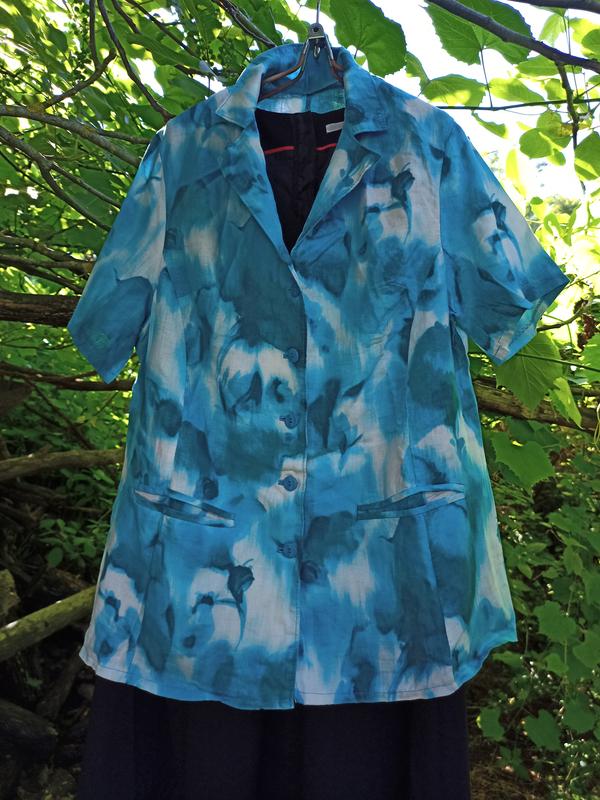Бірюзовий жакет,блуза з льону з кишенями,56-58разм.