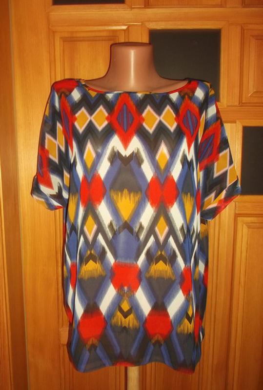 Розпродаж блуз, майок, сорочок. Приємного перегляду. Заміри ПОг 52-56, довжина 62, спинка 68, плече 29. Великий вибір якісного одягу за ціною розпродажів, взуття, сумки.