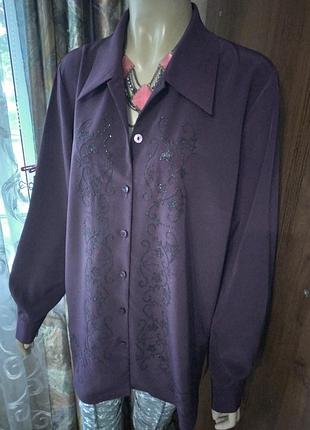 жіноча блузка великий розмір,шовк,в ідеальному стані, пог56-58см, дл.75см,длр.63див.гарний сливовий колір на фото так не видно.