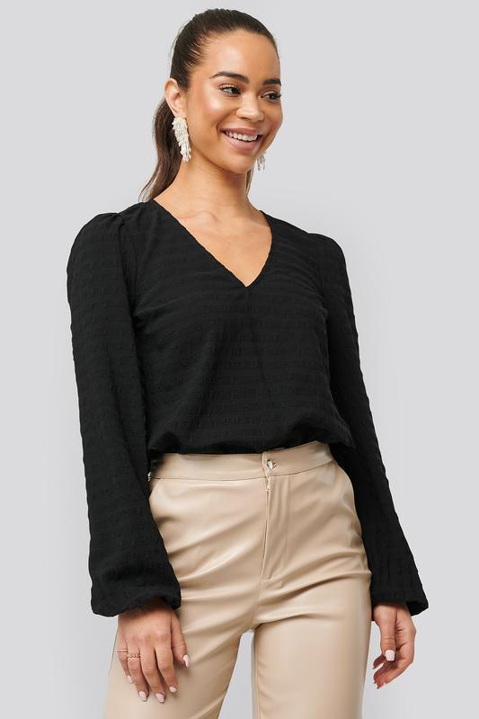 Чорна блуза з рюшами з v-подібним вирізом na-kd / як zara, h&m