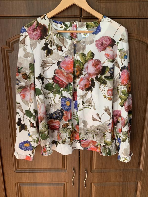 Красива квіткова блузка. Дуже елегантна. Одягала кілька разів. ОГ 55 см Низ 55 см Довжина рукава 57 см Довжина 57 см