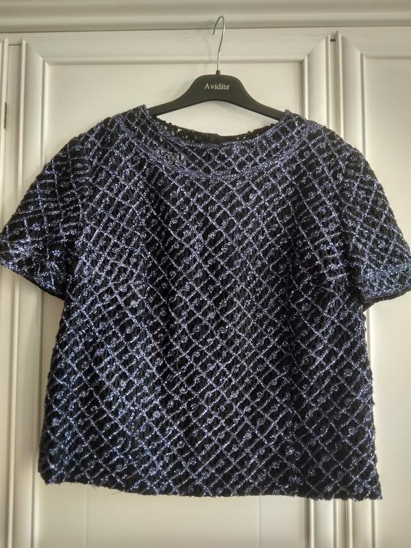 Блуза з сітчастої тканини, на підкладці. Ззаду на гудзиках, обтягнутых тканиною. Пог 57,піт 52,поб 54, довжина 58.