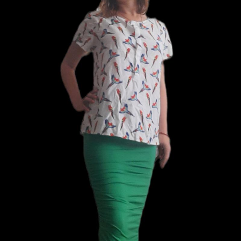 Дуже приємна до тіла,тоненька плечі 40см,пог 51см,іде трапецією,довжина 61см,довжина рукава 15см