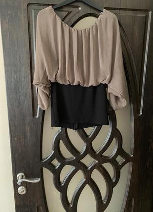 Шикарна, блузка, відмінний, варіант, на роботу, на кожний, день, чи під юбку, чи під штани. в кольорі, з верху капучино, з низу чорного. Заміри: довжина, від плеча, до низу 62 см. В полу, обхваті, в грудях 43 см. на весь обхват 86 см. Талія, в полу, обхваті 40 см. на весь обхват 80 см. Низ блузи, в полу обхваті 40 см. на весь обхват 80 см. Рукав 53 см. Состав: 95% візкоза, 5% еластін.