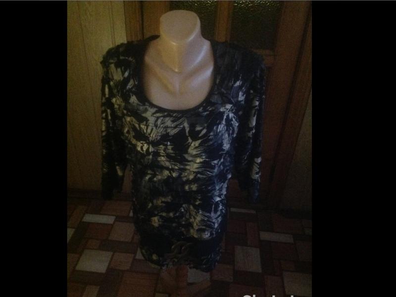 Дуже красива блуза з золотом. Добре тягнеться, поліестер. Довжина-68, довжина рукава від ворота-56, пог-53, окружність низу-110. Мірки зроблені в спокійному Подожении. Стан бу, але дуже гарне. Сток.