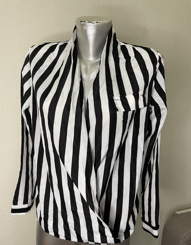 Блуза в смужку, чорно-біла, на запах