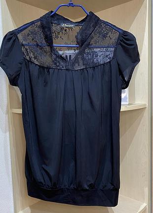 Чорна блузка з якими рукавом і з мереживною спиною