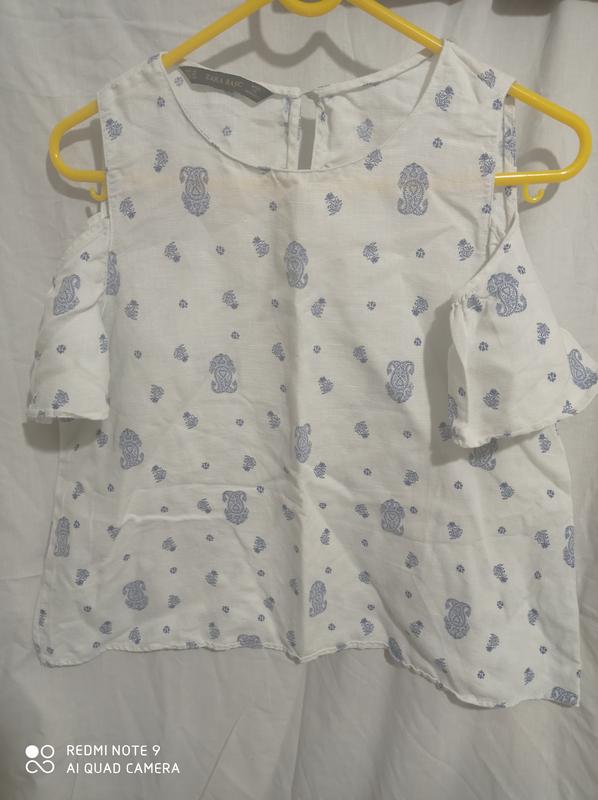 Лляная біла блуза з відкритими плечима льон zara basic льон льон льяная