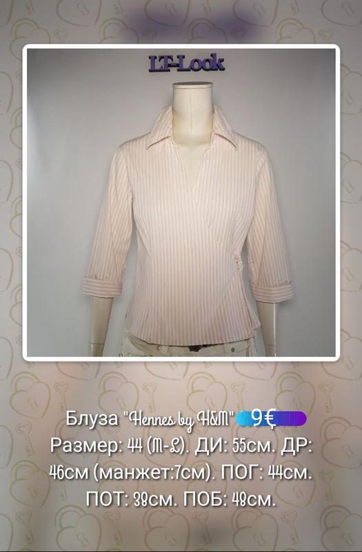 Код: 7-59. Качественная блуза на запах известного и любимого многими шведского бренда "Hennes by H&M" уместна как в деловом стиле, так и в повседневном, смотря с чем Вы ее наденете. V-образный вырез горловины, отложной воротник. Блузка на запАх с завязками снаружи и внутри. Полуприлегающий силуэт можно отрегулировать по фигуре, затянув завязки либо немного роспустив их. Рукав длиной 7/8 с манжетой с разрезом. Такая блуза хорошо сочетается и с юбками, и с бриджами, и с брюками и джинсами. Цвет: белый с бледно-розовой полоской. Размер: 44 (M-L). Состояние: идеальное.
