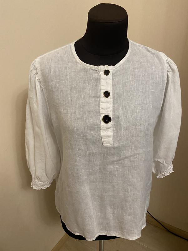 Натуральний льон,на тілі краще сидить,можна навіть замість вишиванки