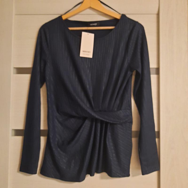 Ошатна синя блуза Orsay розм.М Склад: 95% поліестер, 5% еластан Колір - темно синій. ПОГ-45см ПІТ-39див (тягнеться до 46см) довжина рукава від плечей.шва-58см довжина по спині-59см Стан-новий. Куплена в Німеччині.