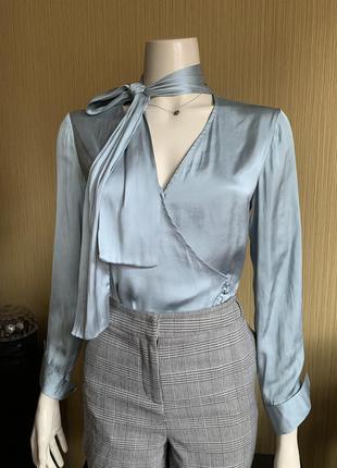 Атласная блуза оливково-серого цвета. Идёт на запах. Шарф можно завязывать по разному. Размер S-M