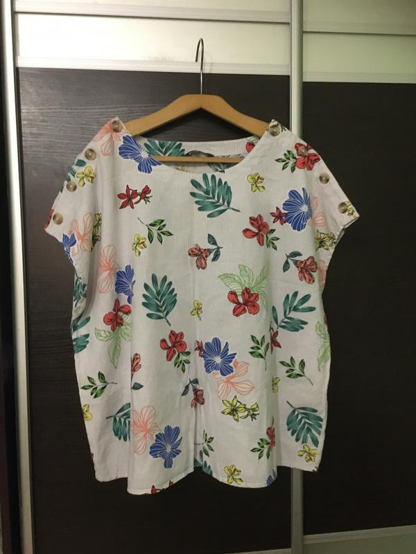 Красива, яскрава , якісна блуза. Пог-71 см, довжина-70. На плечах застібки, показала на фото