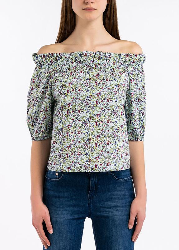 Квітчаста, легка блузка з відкритими плечима. розмір XS, S, M код 32030