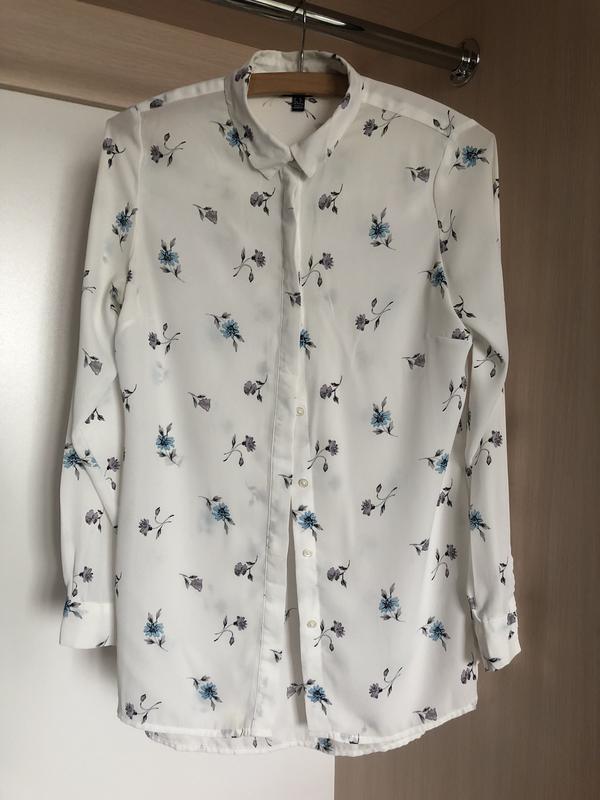 Біла подовжена блуза з квітковим принтом. Бренд New look розмір S, ідеальний Стан