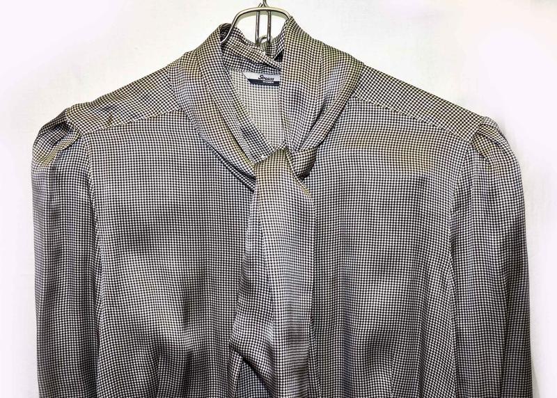 Шовкова блуза з бантом бант відстібається щільний дорогий шовк принт куряча лапка розмір М, невеликий L стан ідеальний, одягнений 1 раз заміри за запитом