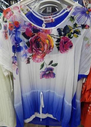 Нарядна блузка. Низ трикотажна кофтинка верх шифон з малюнком.Підійде на розмір 58-60.