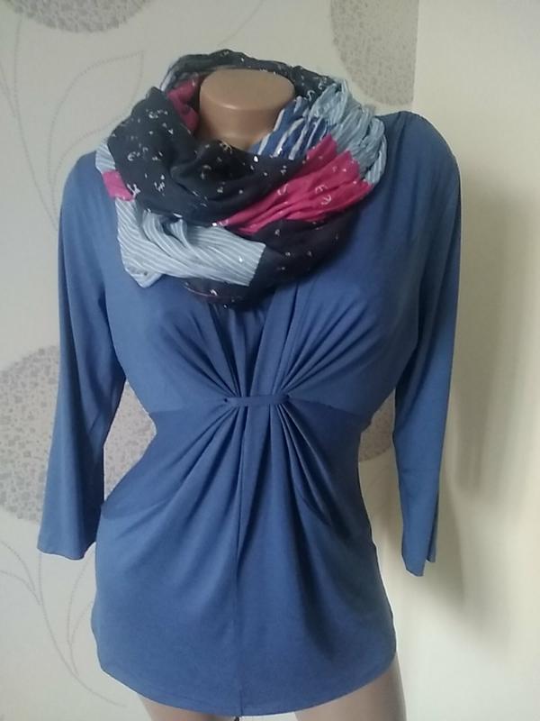 Стильна добротна якісна блуза-футболка із довгим рукавом.М'якенька та приємна на дотик завдяки відмінному складу тканини.Стан нової речі.Без етикетки.Колір - між синім та голубим-"індіго".Плечі -40см , НОГ-46см,НОТ-40см,їНОБ-48см,довжина-60см, довжина рукава-46см(3/4).Тканина віскозна м'якенька ,гарно тягнеться.