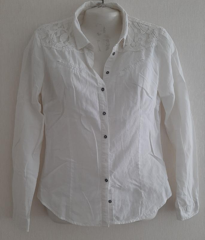 Блуза-сорочка.Хороша.довгий рукав.пуговки..2шт кармашки.гипюрчик в районі воротника..Приталенна Розмір:М(42) замір по запросу
