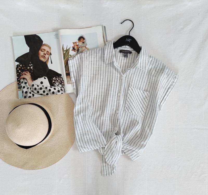 🌿блуза в смужку від Primark з вузлом Розмір:36 Заміри:З грудей 45 см, довжина 51 см Склад:котон