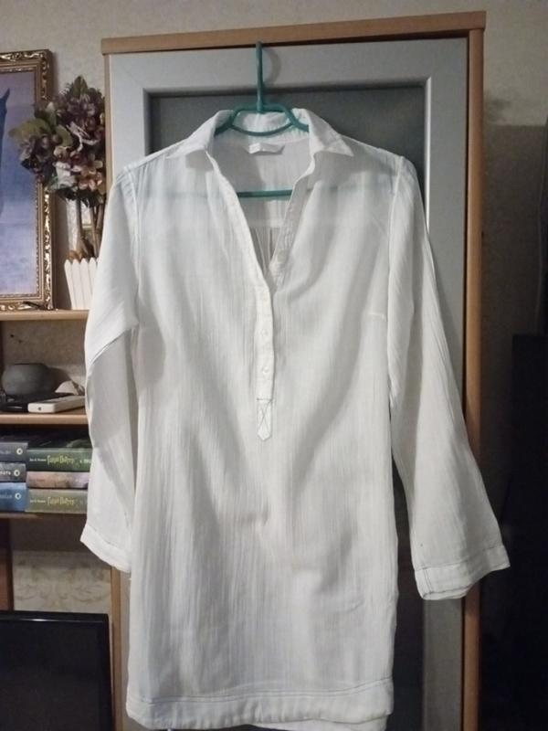Блузка-сорочка подовжена з натурального матеріалу Коттон .жатка.дуже легка і ніжна,поясок ззаду.розмір довжина 85 див. ПОГ 36 див. ПІТ 50см по низу 56см. рукав від плеча 58 див.