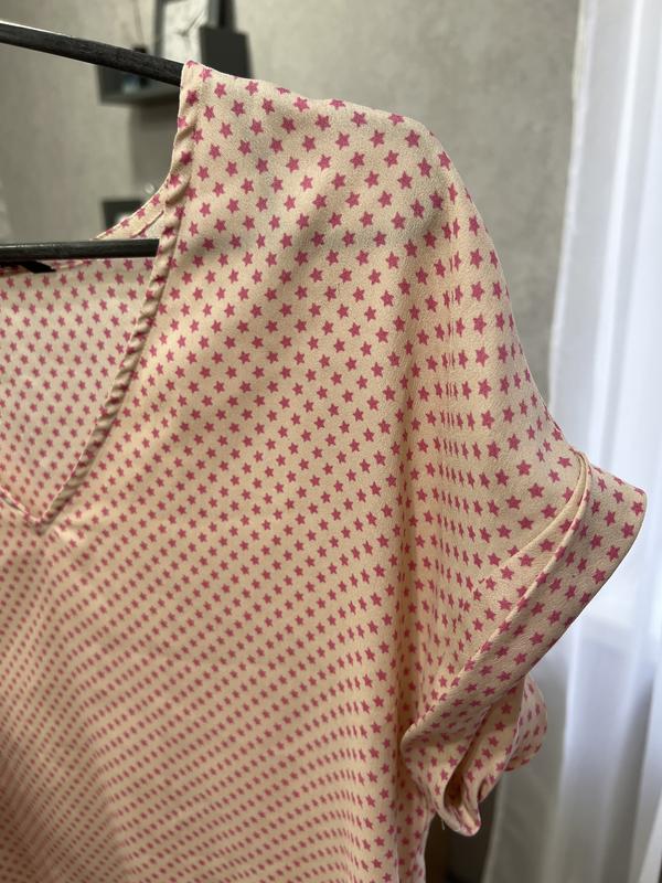 Дуже класна блузка-футболка Zara. Принт - дрібна зірочка, блузка подовжена ззаду. Дуже приємна під час шкарпетки.