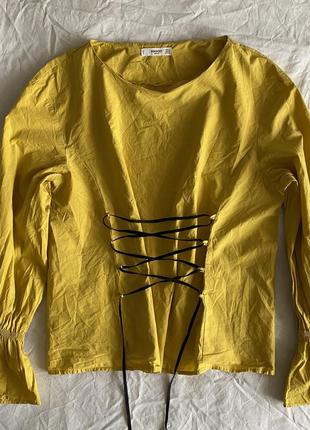 Фото на тілі нема Фото на маникені Фасон вільний Рукави трьохчертвертні на них резінки і рюші Не тягнеся Плотность середня Є крючки для шнуровки можна стягувати як корсет спереду або сзаді Підійде як оверсайз на с м оріентуйтесь по замірам Довжина 55 см) Плечі 46 см) Рукав 55,5 см) Пог 54,5 см) Пот 54 см) Знизу 58,5 см)