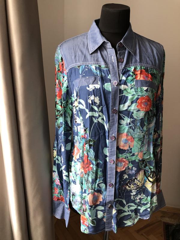 Сорочка блуза синя з квітами