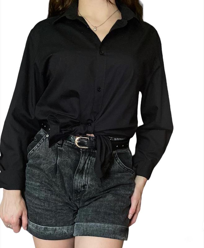 чорна базова сорочка стан речі хороший, є невеличка плямка при носці не помітна Ціна - 120 UAH довжина рукава 61см довжина виробу-71см ОГ - 48 см ширина плеча-43см